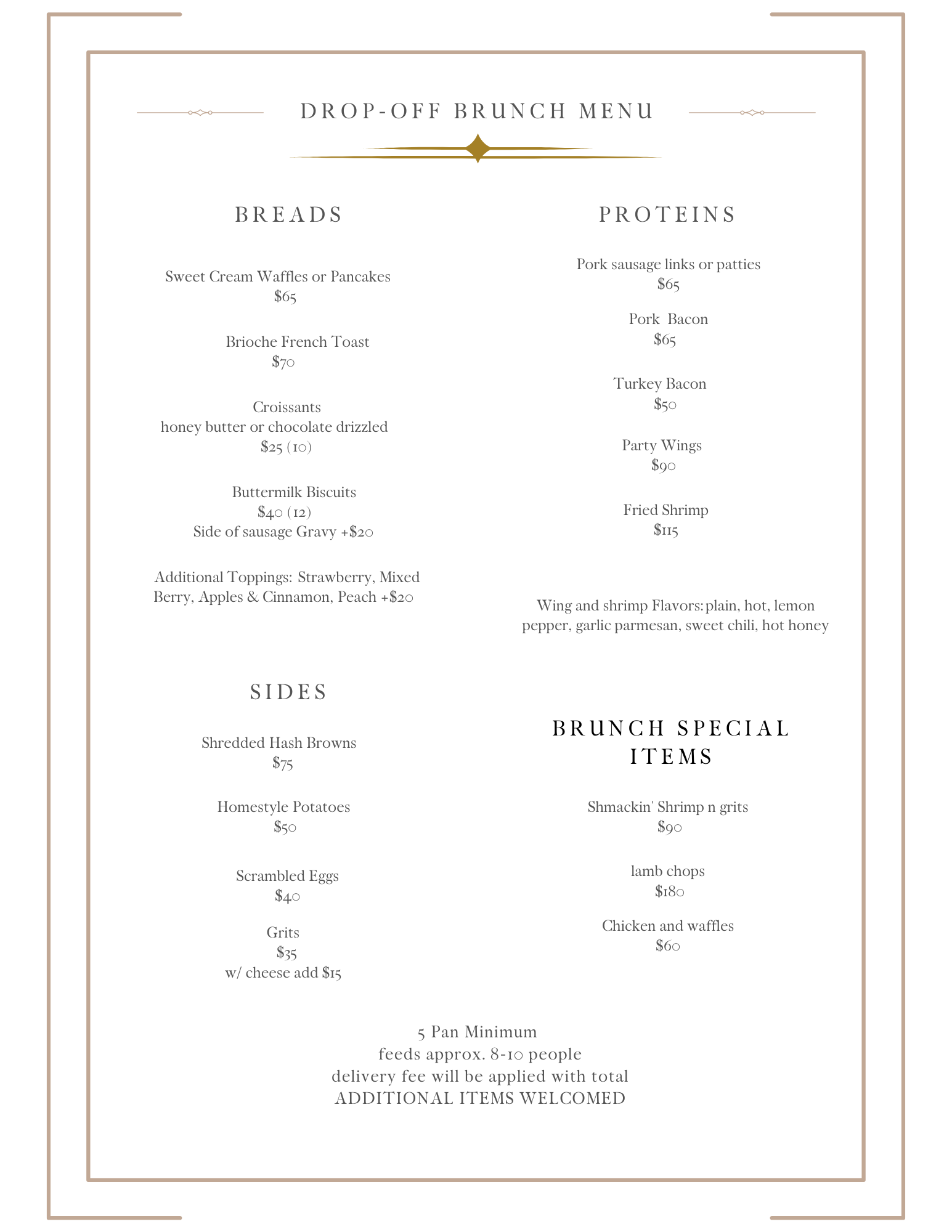 Let us relieve the stress of having to cook for larger parties for any special event you may be hosting.